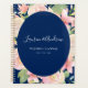 Organisez tous vos détails mariages importants avec ce planificateur personnalisé. Ce design personnalisé présente des fleurs d'aquarelle rose pâle sur un arrière - plan bleu marine.