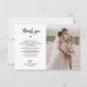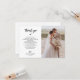Carte de remerciements photo de mariage élégant pour vos invités. Beau script avec message, nom et date modifiable pré-écrit.