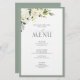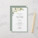 Créez le cadre de réception parfait avec ce design de menu tendance de 14 x 21,5 cm mettant en vedette un magnifique bouquet de fleurs blanches telles que des roses et des hortensias associés à une verdure botanique somptueuse et bordé d'un gris-vert doux. Personnalisez vos détails accentués d'une belle calligraphie manuscrite moderne. Parfait pour, mais pas limité à, ce mariage dans le jardin ou la cour arrière. Contactez le designer pour des produits assortis. Voir la suite ici : https://www.zazzle.com/collections/elegant_white_gray_green_watercolor_floral_wedding-119579606519645351 Copyright Anastasia Surridge pour Elegant Invites, tous droits réservés.