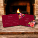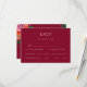 Faites-vous un plaisir avec votre mariage décontracté grâce à notre carte RSVP moderne. Avec un texte blanc et épuré sur un arrière - plan bordeaux, cette carte simple et élégante fait partie de notre belle collection élégante de mariages bordeaux. Laissez vos invités facilement indiquer leurs préférences alimentaires et RSVP avec facilité. Complétez votre papeterie mariage avec nos conceptions de coordination. RSVP pour une fête sans stress !