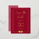 Ajoutez une touche élégante à vos invitations de mariage avec ce rouge rubis enregistrer la carte postale date. Le vrai papier à l'avant présente une texture surélevée. Customisez simplement le texte pour répondre à vos besoins. Utilisez le modèle pour créer votre propre feuille de mariage élégante enregistrer la carte postale date.