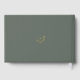 Un élégant livre d'or de mariage avec des choix en or véritable, or rose, ou feuille d'argent contre un arrière - plan vert sauge profond pour que vos invités signent et pour de doux souvenirs de votre mariage de rêve. Personnalisez l'avant et l'arrière avec vos détails pour en faire votre propre.