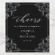 Ces élégants étiquettes de bouteilles de vin noir et blanc ou de mariage de répétition présentent une impression blanche sur un arrière - plan noir. Le mot "Cheers" est dans un script élégant et est entouré d'un design vintage classique de coins de cadre ornés. Il est parfait pour un mariage noir élégant et sophistiqué ou un dîner de répétition. Voir tous les produits correspondants dans ma collection ci-dessous.
