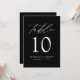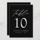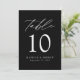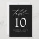 Cartes de numéro de table mariage tendance et minimaliste avec lettrage moderne blanc avec "Table" dans script de calligraphie moderne. Le design est composé d'un arrière - plan noir ou d'une couleur de votre choix. Le dessin se répète à l'arrière. Pour commander les cartes de table en noir et blanc : ajoutez votre nom, votre date de mariage et votre numéro de table. Ajoutez chaque numéro à votre panier individuellement et retirez-le lorsque vous avez terminé.