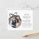 Invitations noires et blanches élégantes. Doté d’un arc aquarelle peint à la main encadrant une photo circulaire d’un couple à gauche, associé à une typographie serif intemporelle et à des lettres manuscrites à droite. Le dos présente un cadre de style ticket avec les détails de l'événement. Idéal pour les cravates noires ou les événements formels. Dans le cadre de la sélection du budget de Zazzle, cette feuille n'est pas disponible en taille standard. Pour obtenir ce design sur une carte standard, vous pouvez le trouver dans la collection ou utiliser la Zazzle Make Machine pour le transférer sur votre produit préféré. Trouvez les objets correspondants dans la collection, ou visitez le magasin pour plus d'invitations de mariage.