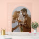 Créez votre propre panneau mariage acrylique avec l'une de vos photos dans un cadre en forme d'arc à côté de noms personnalisés, date et autres détails mariages dans la typographie moderne sur arrière - plan transparent. Une façon épurée et minimaliste d'accueillir les invités lors de votre journée spéciale.