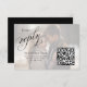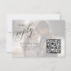 Cette carte RVP mariage présente un design noir et blanc intemporel avec une typographie modèle photo et élégante pour une touche moderne mais classique. L'élégant script de calligraphie et le code QR intégré guident les invités directement à Notre site Mariages pour une réponse en ligne facile. Avec sa disposition simple et minimaliste et son style RSVP élégant, cette carte est idéale pour les couples à la recherche de papeterie mariage chic, fonctionnelle et design.
