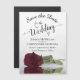 Ces belles cartes magnétiques sont le moyen parfait de faire savoir à vos amis et votre famille de sauver la date pour votre prochain mariage. Elles sont aménagées dans un style romantique avec un seul rose bordeaux à long tige, marron ou rouge vif se reflétant dans un bassin avec vagues et vagues. Classique et élégant, le design simple comprend lacy script calligraphie lettrage.