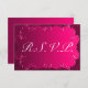 Ce mariage charmant RSVP en rose fushia présente un beau thème vintage qui rappelle le parchemin ancien, avec un cadre élégant d'éléments de défilement et de courbes cramoisi. Le cadre pivotant ornemental entoure la typographie classique en blanc, avec le titre R.S.V.P. traditionnel. Le verso de la carte contient tous les détails nécessaires, comme la place pour les noms des invités et les options pour leur présence/non-présence.