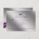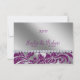 Elégante carte de réponse rsvp violet & argent / anniversaire avec damas feuille étincelant.
