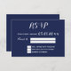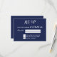 Elégante carte de mariage bleu marine RSVP avec texte changeant blanc et graphisme blanc décoratif