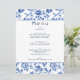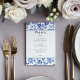 Faites l'apéro de votre réception de mariage avec cet élégant menu botanique, conçu pour compléter une célébration classique et intemporelle. La bordure florale sophistiquée en bleu profond encadre le texte central, offrant une présentation gracieuse et raffinée pour vos invités. Avec un design arrière - plan d'inspiration vintage blanche, vous apportez une touche de charme d'antan à votre célébration moderne. Parfait pour ajouter une couche de beauté supplémentaire à votre table, ce menu guide vos invités à travers les délicieux cours prévus pour votre grand jour. Idéal pour les couples à la recherche d'une esthétique traditionnelle et élégante pour leur mariage.