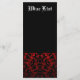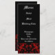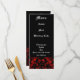 Menus mariage de thème gothique élégant et classe à personnaliser avec votre propre texte. En rouge et noir avec un beau lettrage médiéval blanc.