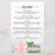 Ces beaux menus mariages sont simples, élégants et élégants tout en étant abordables et abordables. Elles présentent un design élégant et séduisant avec un titre de calligraphie script et un rose rose vif se reflétant dans un bassin d'eau avec vagues et ondulations. Le dos est une belle couleur rose pastel pâle marbré avec les noms du couple et la date mariage en bas.