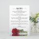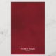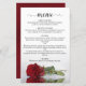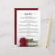 Ces beaux menus mariages sont simples, élégants et élégants tout en étant abordables et abordables. Elles présentent un design chic et glamour avec un titre de calligraphie script et une seule rose rouge réfléchissant dans un bassin d'eau avec vagues et ondulations. Le dos est une belle couleur rouge marbré avec les noms du couple et date mariage en bas.
