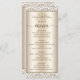 Ce menu de parties scintillant au champagne glamour branché est parfait pour votre décor de mariage élégant. La fausse base métallique est encadrée sur le dessus et le bas avec damas, et le titre est dans la typographie script moderne. Sur le dos est un élégant monogramme de script.