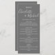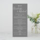 Elégante carte de menu mariage de signature grise avec des noms de style signature, cette carte de menu moderne peut être personnalisée avec vos informations en lettrage chic. Conçu par Thisisnotme©