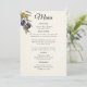 Ce menu mariage présente un élégant décor d'olivier. Le motif de l'olivier associé au feuillage vert et aux olives reflète un charme méditerranéen intemporel. Customisez le menu en ajoutant votre propre option de menu.