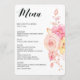 Élégant menu mariage floral avec de belles fleurs d'aquarelle, perles, dentelle et texte personnalisable imprimé sur arrière - plan blanc