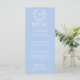 Améliorez le charme de votre réception de mariage grâce à ces cartes de menu sophistiquées et élégantes à la mariage florale bleue et blanche. Décoré avec un motif floral délicat et présentant une couronne florale intemporelle ornée du monogramme de la mariée et du marié.