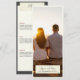 Venez fêter votre journée spéciale grâce à notre menu rustique mariage, conçu pour convenir à notre Elégante suite de faire-part de mariage rustiques. Ce menu comporte une photo personnalisable à l'avant, entourée d'une bordure jaune clair qui crée un effet blanc vieilli. Au centre de la photo, un rectangle en forme de bande de masquage plein de charme tient les noms du couple dans une police élégante et leur date mariage dans une police vintage de style machine à écrire. À l'arrière, un arrière - plan foncé complète un rectangle jaune clair qui contient tous les menus mariages de la police de machine à écrire. Le dessin du ruban avec le titre "Menu" apparaît en haut de ce rectangle, créant une illusion délicieuse que le ruban tient le papier avec l'information sur une planche rustique.