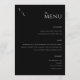 Menu mariage moderne avec design élégant de typographie minimaliste en noir et blanc.