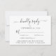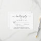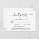 Elégante carte RSVP mariage avec "réponse gentille" dans un script élégant avec des swashes, typographie simple et moderne, menu personnalisé options d'entrée et vos noms joints par un coeur sur le dos.