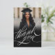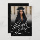 Célébrez votre graduation en style avec cette carte de remerciement plate avec une typographie de script sophistiquée qui dit gracieusement "Merci" sur le devant. Montrez votre photo senior préférée pour une touche personnelle qui saisit parfaitement le moment. Le dos comprend un espace pour un message entièrement personnalisable pour express votre profonde appréciation aux amis, à la famille et aux proches. Imprimée sur des cartes de qualité supérieure au design moderne et élégant, cette carte est un moyen intemporel de remercier. Détails : Plat, carte recto-verso, Elegant script "Merci" design, Photo personnalisée à l'avant et message personnalisé à l'arrière. Ce carte de remerciements est parfait pour les célébrations au lycée, à l'université ou à l'université. Faites de votre gratitude un souvenir inoubliable avec une carte aussi spéciale que votre réussite.
