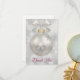Un carte de remerciements plat au design de vacances magique. Doté d'une boule de Noël argentée ornée de décorations de flocon de neige et terminé par un joli arc d'argent. L'arrière - plan est une illustration de lumières de livres argentés avec d'élégantes étoiles éparpillées un peu partout.