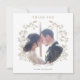 Élégant carte de remerciements mariage de couronne. Délicate fausse couronne florale couleur or sur un arrière - plan blanc avec les noms de mariée et de mariée dans une police serif moderne. Un message peut être personnalisé sur le dos ou supprimé pour une note manuscrite. Parfait pour une douche nuptiale, mariage ou anniversaire.