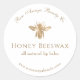 Un étiquette autocollant à thème d'abeille dorée. Cette conception présente une conception d'abeilles en or de fausse feuille. Idéal pour l'étiquetage des produits de beauté liés à la cire d'abeille.
