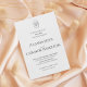 Invite your guests with timeless sophistication. This elegant wedding invitation features refined black typography on a soft white background, centered around a delicate floral crest framed in an oval motif. The balanced layout blends classic formality with modern minimalism, making it ideal for traditional, romantic, or upscale weddings.