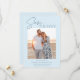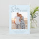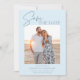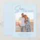 A modern light blue save the date photo announcement featuring a calligraphy script font and simple minimalist design. This unique save the date card is a trendy way to announce your wedding. THE SAMPLE PHOTO IS NOT INCLUDED. REPLACE WITH YOUR OWN PHOTO BEFORE ORDERING.