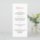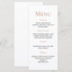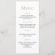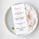 The balanced spacing, warm accent headings, and clean typography create a polished, contemporary aesthetic that complements both classic and modern wedding décor. From plated dinners to formal multi-course celebrations, this customizable menu card adds a graceful finishing touch to your place settings.