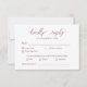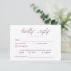 Cette carte RSVP de mariage d'option de repas présente un script élégant avec un arrière - plan chic bordeaux à l'approche minimaliste moderne. Il est personnalisable. Afficher d'autres produits de cette collection.