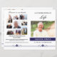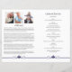 Un programme funéraire magnifiquement élégant avec un design floral bleu et un groupe de nom bleu. Les caractéristiques comprennent une grande photo sur le devant, collage photo sur la page arrière avec 9 photos et beaucoup d'espace pour une nécrologie et l'ordre de service (ou d'autre texte de votre choix sur les pages intérieures. Tout le texte est facile à modifier et peut être customisé pour créer un programme funéraire personnel et mémorable pour votre être cher. Ce programme funéraire imprime à deux côtés sur une seule feuille de papier de format Lettre (8,5 x 11 pouces). Une fois plié, cela crée un livret avec 4 pages de taille demi-lettre (8,5 x 5,5 pouces par page).