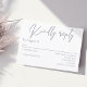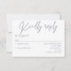 Cette carte de répons élégante et moderne présentait une écriture gris sombre sur un arrière - plan blanc. Nous avons utilisé une combinaison de lettrage classique élégant, jumelé à des lettres calligraphiques modernes.Une belle carte de réponse simple et personnalisable, conçue pour le couple moderne à la recherche d'élégance et de simplicité. Cette carte magnifiquement conçue présente un look propre et sophistiqué dans un design intemporel.