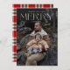 Elégante 1 photo Joyeuse carte de Noël avec nom de signature de script. Design de typographie moderne. Personnaliser avec photo de vacances verticale, nom, et année.