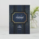 Elégant Monogram Bar Mitzvah Blue Gold Invitation
