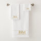 Elegant Monogram Gold Name bath towels set offer a luxury feel for any occasion. This botanical gold on white background, features a small botanical detail between the initials and classic elegant typography, designed to make a lasting impression. Perfect for personal notes, thank you messages, and the clean, modern design emphasizes style and quality.