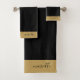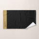 Nom de script en or noir monogramme personnalisé, serviette de bain avec bordures d'or. Rafraîchissez votre décor de salle de bain avec un style typographique minimaliste.