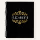 Un élégant carnet noir et or pour votre bureau ou votre retour à l'école. Ajoutez votre nom entre la floraison dorée à l'avant et une initiale à l'arrière. Conçu pour vous par Blackberry Boulevard.