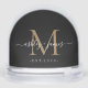 Celebrate your love story with this elegant wedding snow globe featuring a bold monogram, romantic handwritten names, and your special "EST." date. Set on a rich charcoal background with a soft gold initial and white script typography, this personalized design makes a timeless keepsake for newlyweds, anniversaries, or couples celebrating their winter wedding. A beautiful addition to your home decor or a thoughtful gift for your spouse.