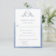 Elégante carte RSVP avec un beau monogramme botanique bleu poussiéreux, avec la possibilité d'ajouter des choix de repas, ou, si vous préférez avoir RSVP sans options de repas, il suffit d'effacer les instructions de repas et les choix des zones de texte pour supprimer ou ajouter un message personnel à vos invités (i.e. "J'espère que vous y arriverez, je suis impatient de vous y voir !"). Armature d'aquarelle bleu foncé sur l'avant, tandis que le dos avec l'aquarelle délicate dans les teintes bleu et bleu poussiéreux. Style propre, minimaliste et élégant. Une partie de notre collection "Dusty Blue Watercolor Botanical Monogram" avec une variété de produits de coordination disponibles. Visitez la collection entière avec ce lien : https://www.zazzle.com/collections/dusty_blue_watercolor_botanical_monogram_wedding-119563330291349279