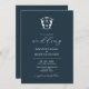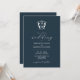 La faire-part de mariage bleue élégante présente un design minimal avec une crête monogramme. Typographie de script moderne avec police serif classique en blanc. Pour acheter la ligne complète, visitez www.zazzle.com/dotellabelle