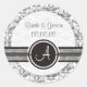 Élégant Monogramme Damask Enregistrer Les Stickers De Mariage Date. Faites une impression durable avec cet élégant monogramme Damask Save The Date Wedding Stickers. Il y a une bande le long de l'autocollant et un cercle avec un élégant monogramme dessus. Le beau motif damassé gris et blanc arrière - plan ajoute style et finesse. Conçu par Olympia. Classique et sophistiqué mais contemporain à la fois. Design disponible en plusieurs couleurs. Personnalisez-le avec votre texte. Vous pouvez modifier le texte et l'utiliser comme autocollants de Merci ou toute autre utilisation que vous pensez.