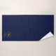 Cette serviette personnalisée est simple, sophistiquée et élégante. Il dispose d'un arrière - plan bleu marine avec un délicat monogramme de couronne botanique d'or et typographie d'écriture d'or pour votre personnalisation.