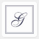 Élégant monogramme de script avec autocollants de carré à double bordure. Blanc avec texte bleu marine.