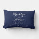 Elégant monogrammed bleu marine mariage coussins avec texte blanc changeant et graphiques décoratifs