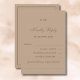 Donnez le ton à votre mariage simple et moderne avec cette carte RSVP personnalisée et minimale de mariage Taupe, au design épuré et élégant. Cette carte de réponse présente une disposition minimaliste et doublée accentuée par le monogramme du couple, créant une touche raffinée et personnelle. La typographie taupe profonde chic et l'élégante police de script se démarquent magnifiquement par rapport à un arrière - plan taupe clair classique, offrant un style intemporel avec une sophistication sous-estimée. Parfait pour le couple moderne à la recherche d'une option RSVP subtile mais élégante qui complète une palette mariage moderne ou neutre.